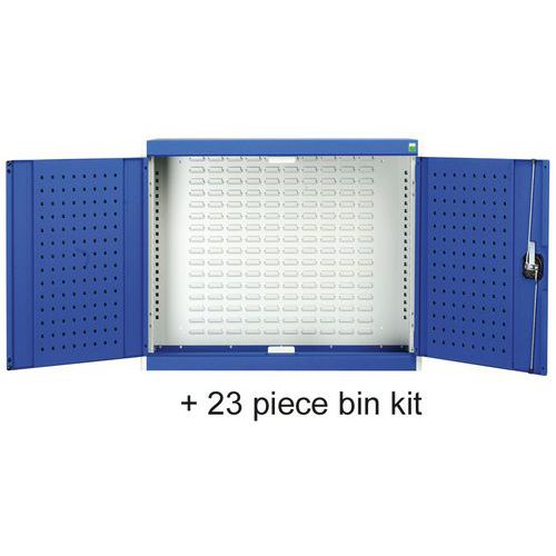Szafka wisząca Bott Cubio ze skrzynkami i panelami perforowanymi na narzędzia, 70 x 80 x 32,5 cm, 23 pudełka