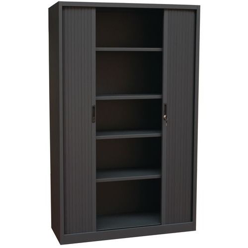 Metalowa szafa aktowa Ekwo z roletą, 4 półki, 195 x 120 x 45 cm, czarna/srebrna