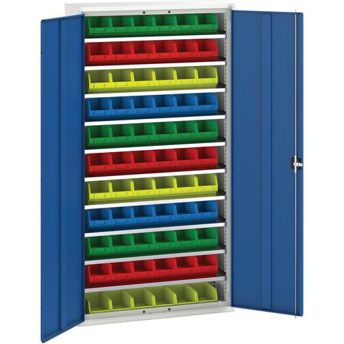 Szafka Bott Verso z pudełkami, 200 x 105 x 35 cm, 10 półek, 66 pudełek, szaro-niebieska