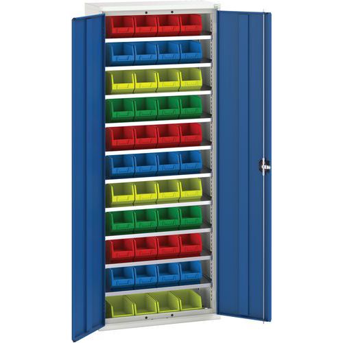 Szafka Bott Verso ze skrzyniami, 200 x 80 x 35 cm, 10 półek, 44 pudełka, szaro-niebieska