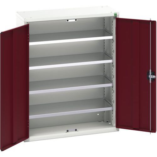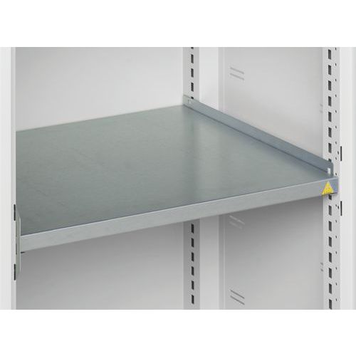 Metalowe szafy warsztatowe wyposażone w plastikowe skrzynki na mniejsze materiały. Spawana konstrukcja stalowa, powierzchnia malowana proszkowo. Półki ocynkowane o nośności 75 kg, z możliwością regulacji wysokości co 25 mm. Wzmocnione drzwi wahadłowe z trzypunktowym zamkiem bębenkowym z dwoma kluczami. Dostarczane w plastikowych pudełkach nr 3 WxSxG: 12,5 x 14,5 x 24 cm (mix kolorów). Maks. obciążenie półki (kg) : 75 kg Maks. obciążenie (kg) : 1000 kg