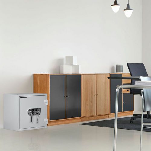 - Szafa zawiera certyfikowany zamek oraz dwa klucze.