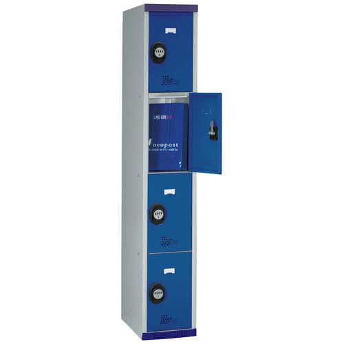 | Nazwa produktu | Szafy szatniowe Acial, o konstrukcji spawanej, 1 słupek, 4 boksy, 300 mm, zamek szyfrowy |