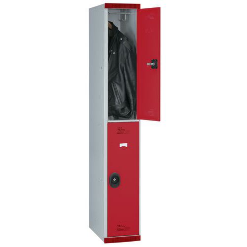 | Nazwa produktu | Szafa szatniowa Acial, konstrukcja spawana, 2 przedziały, szerokość 300 mm, zamek cylindryczny, szara/czerwona |