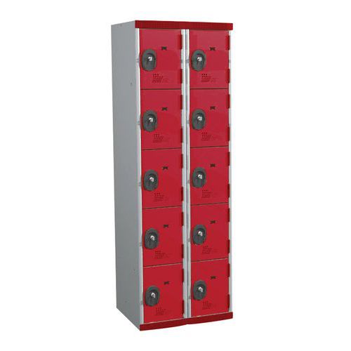| Nazwa produktu | Szafa szatniowa Acial, o konstrukcji spawanej, 2 słupki, 10 boksów, 300 mm, zamek cylindryczny, szara/czerwona |