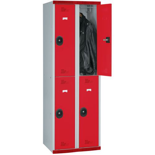 | Nazwa produktu | Szafa szatniowa Acial, o konstrukcji spawanej, 2 słupki, 4 boksy, 300 mm, zamek cylindryczny, szara/czerwona |