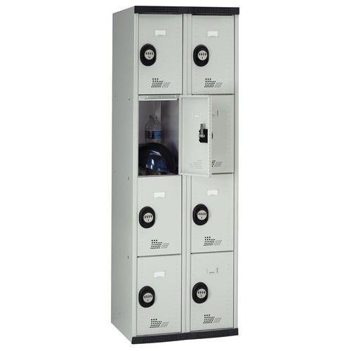 | Nazwa produktu | Szafa szatniowa Acial, o konstrukcji spawanej, 2 słupki, 8 boksów, 300 mm, zamek szyfrowy, szara/szara |