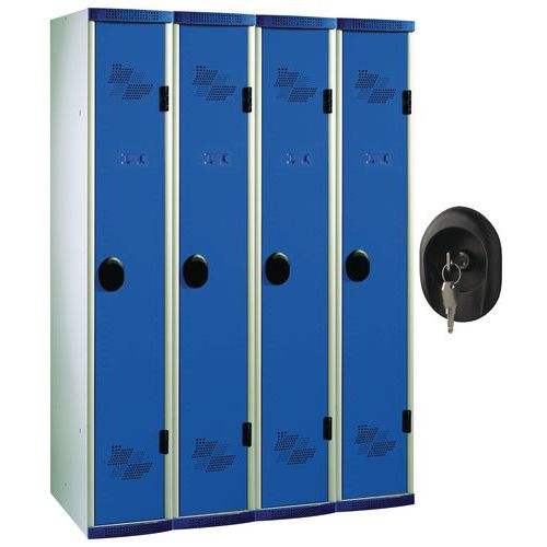 | Nazwa produktu | Szafa szatniowa Acial, konstrukcja spawana, 4 przedziały, 300 mm, zamek cylindryczny, szara/niebieska |