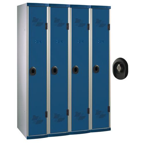 | Nazwa produktu | Szafa szatniowa Acial, o konstrukcji spawanej, 4 przedziały, 300 mm, zamek obrotowy, szara/niebieska |