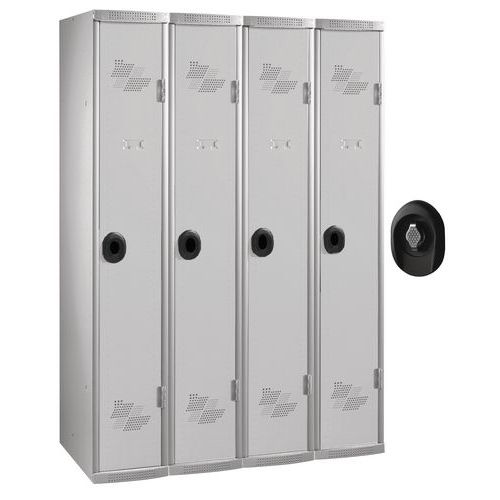| Nazwa produktu | Szafa szatniowa Acial, o konstrukcji spawanej, 4 przedziały, 300 mm, zamek obrotowy, szara/szara |