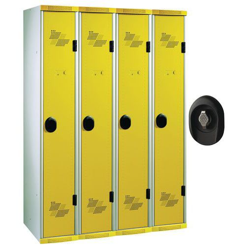 | Nazwa produktu | Szafa szatniowa Acial, o konstrukcji spawanej, 4 przedziały, 300 mm, zamek obrotowy, szara/żółta |