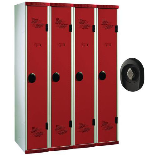 | Nazwa produktu | Szafa szatniowa Acial, o konstrukcji spawanej, 4 przedziały, 300 mm, zamek obrotowy, szara/czerwona |