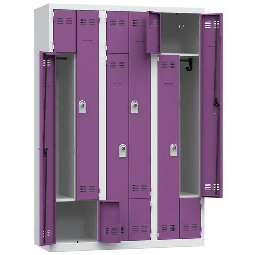 Szafa szatniowa Vinco, o konstrukcji spawanej, drzwi Z, 6 przedziałów, zamek obrotowy, szara/fioletowa Szafa szatniowa Vinco, o konstrukcji spawanej, drzwi Z, 6 przedziałów, zamek obrotowy, szara/fioletowa