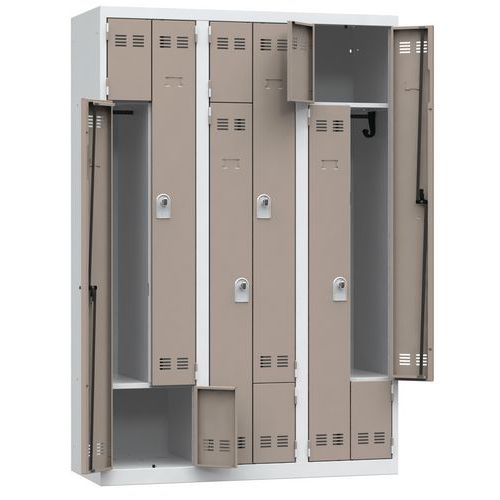 Szafa szatniowa Vinco, o konstrukcji spawanej, drzwi Z, 6 przedziałów, zamek obrotowy, szara/brązowa Szafa szatniowa Vinco, o konstrukcji spawanej, drzwi Z, 6 przedziałów, zamek obrotowy, szara/brązowa