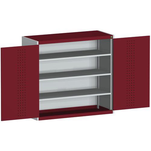 Szafka warsztatowa Bott Cubio 160, 120 x 130 x 52,5 cm, drzwi perforowane, szaro-czerwona
