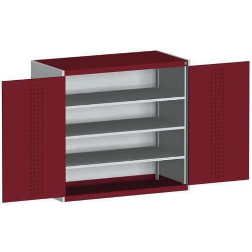 Szafka warsztatowa Bott Cubio 160, 120 x 130 x 65 cm, drzwi perforowane, szaro-czerwony