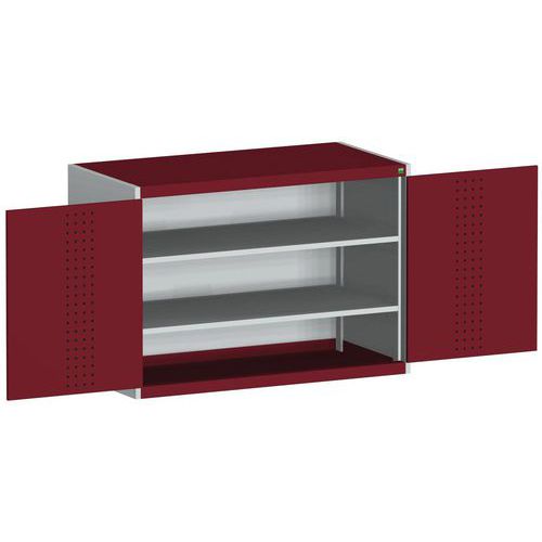 Szafka warsztatowa Bott Cubio 160, 90 x 130 x 65 cm, drzwi perforowane, szaro-czerwony