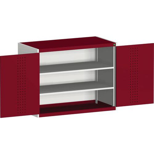 Szafka warsztatowa Bott Cubio 160, 90 x 130 x 52,5 cm, drzwi perforowane, szaro-czerwony