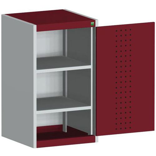 Szafka warsztatowa Bott Cubio, 90 x 52,5 x 52,5 cm, drzwi perforowane, szaro-czerwona