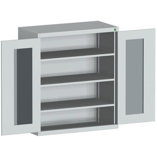 Szafka warsztatowa z przezroczystymi drzwiami Bott Cubio, 120 x 105 x 52,5 cm, 3 półki, szaro-szara