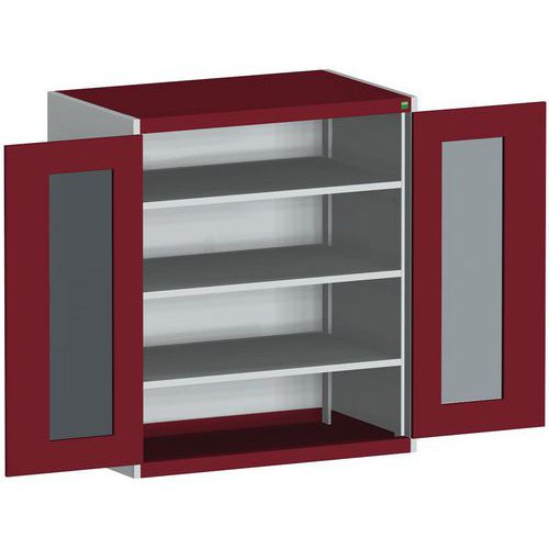 Szafka warsztatowa z przezroczystymi drzwiami Bott Cubio, 120 x 105 x 65 cm, 3 półki, szaro-czerwony