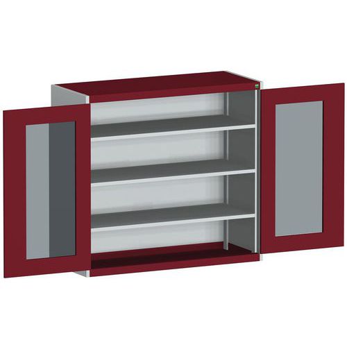 Szafka warsztatowa z przezroczystymi drzwiami Bott Cubio, 120 x 130 x 52,5 cm, 3 półki, szaro-czerwony