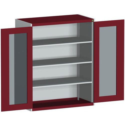 Szafka warsztatowa z przezroczystymi drzwiami Bott Cubio, 160 x 130 x 65 cm, 3 półki, szaro-czerwony