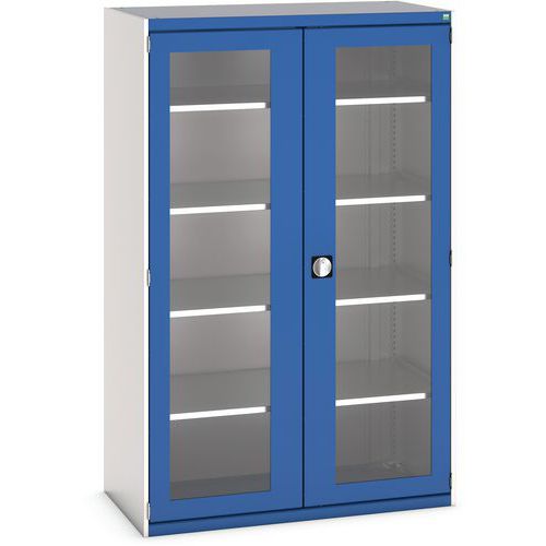 Szafka warsztatowa z przezroczystymi drzwiami Bott Cubio, 200 x 130 x 65 cm, 4 półki, szaro-niebieski