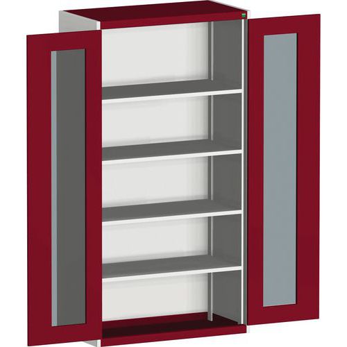 Szafka warsztatowa z przezroczystymi drzwiami Bott Cubio, 200 x 105 x 52,5 cm, 4 półki, szaro-czerwony