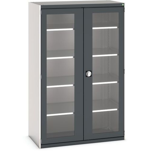 Szafka warsztatowa z przezroczystymi drzwiami Bott Cubio, 200 x 130 x 65 cm, 4 półki, szaro-antracyt