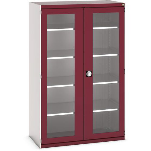 Szafka warsztatowa z przezroczystymi drzwiami Bott Cubio, 200 x 130 x 65 cm, 4 półki, szaro-czerwony