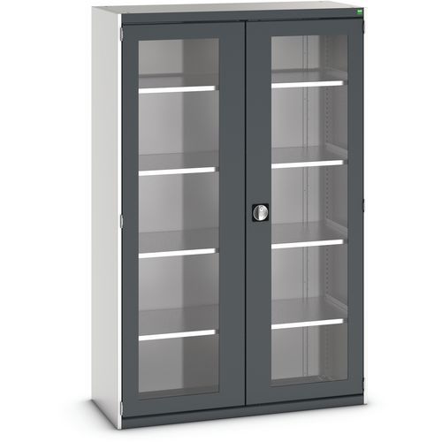 Szafka warsztatowa z przezroczystymi drzwiami Bott Cubio, 200 x 130 x 52,5 cm, 4 półki, szaro-antracyt