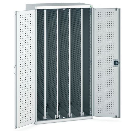 Szafka warsztatowa Bott Cubio z wysuwanymi panelami perforowanymi, 200 x 105 x 65 cm, drzwi pełne, szaro-szary