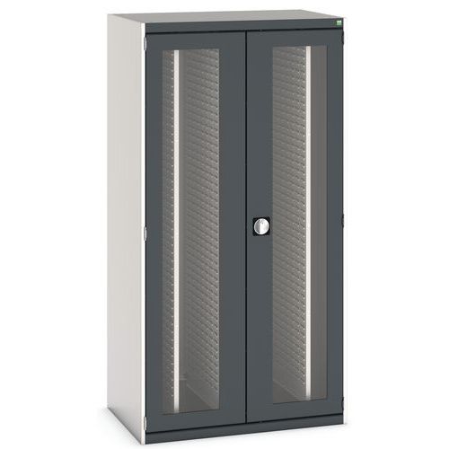 Szafka warsztatowa Bott Cubio z wysuwanymi panelami perforowanymi, 200 x 105 x 65 cm, drzwi przezroczyste