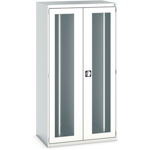 Szafka warsztatowa Bott Cubio z wysuwanymi panelami perforowanymi, 200 x 105 x 65 cm, drzwi przezroczyste