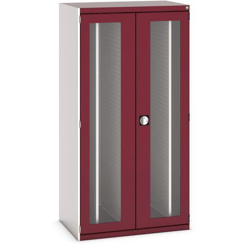Szafka warsztatowa Bott Cubio z wysuwanymi panelami perforowanymi, 200 x 105 x 65 cm, drzwi przezroczyste
