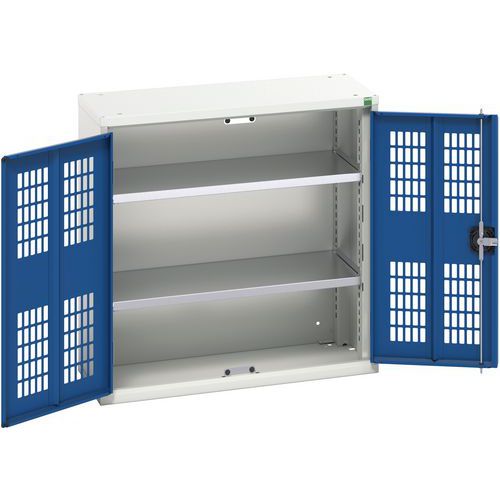 Szafka warsztatowa z półkami Bott Verso, drzwi druciane, 80 x 80 x 35 cm, 2 półki, szaro-niebieski
