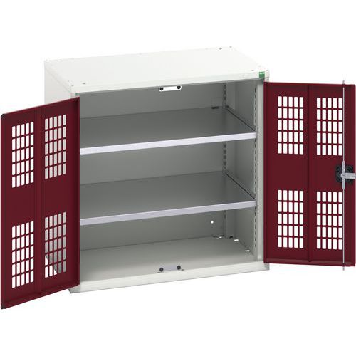 Szafka warsztatowa z półkami Bott Verso, drzwi druciane, 80 x 80 x 55 cm, 2 półki, szaro-czerwony