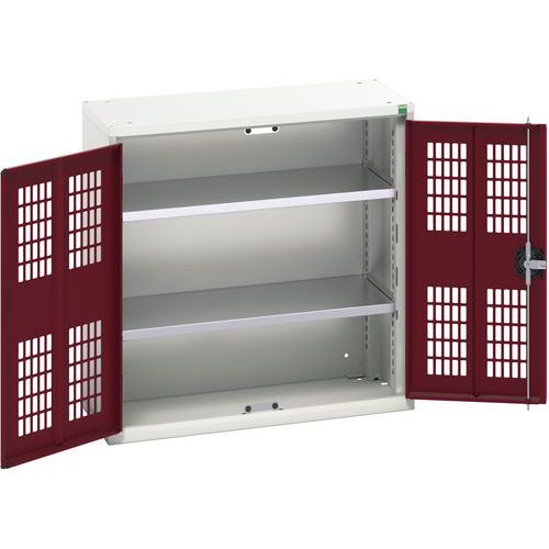 Szafka warsztatowa z półkami Bott Verso, drzwi druciane, 80 x 80 x 35 cm, 2 półki, szaro-czerwony