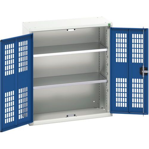Szafka warsztatowa z półkami Bott Verso, drzwi druciane, 90 x 80 x 35 cm, 2 półki, szaro-niebieski