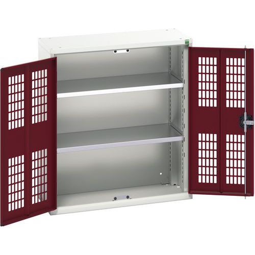Szafka warsztatowa z półkami Bott Verso, drzwi druciane, 90 x 80 x 35 cm, 2 półki, szaro-czerwony