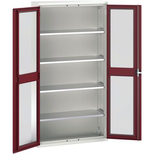 Szafka warsztatowa z przezroczystymi drzwiami Bott Verso, 200 x 105 x 35 cm, 4 półki, szaro-czerwony