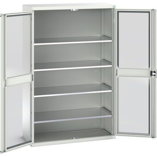 Szafka warsztatowa z przezroczystymi drzwiami Bott Verso, 200 x 130 x 55 cm, 4 półki, szaro-szara