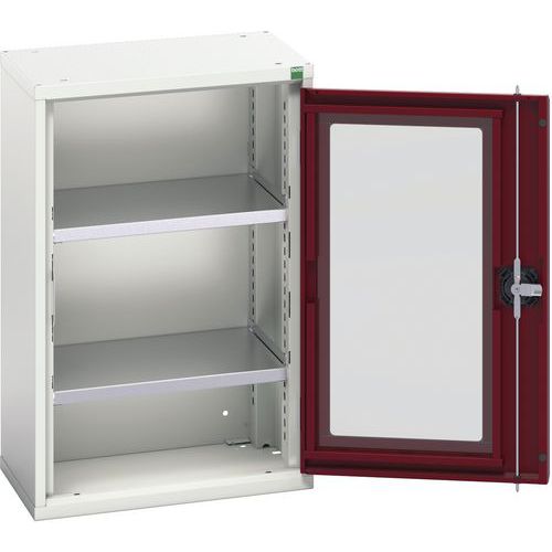 Szafka warsztatowa z przezroczystymi drzwiami Bott Verso, 80 x 52,5 x 35 cm, 2 półki, szaro-czerwony