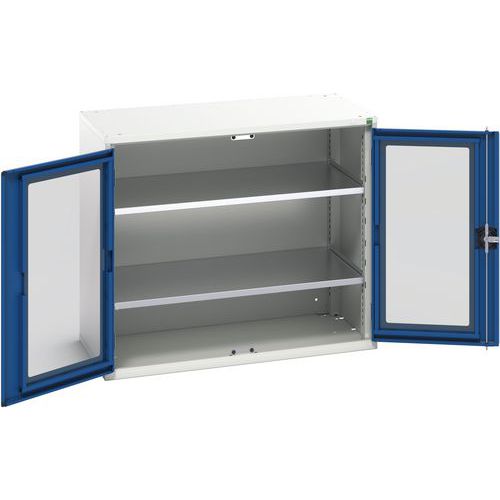 Szafka warsztatowa z przezroczystymi drzwiami Bott Verso, 90 x 105 x 55 cm, 2 półki, szaro-niebieska