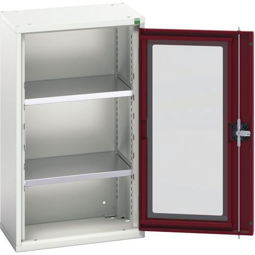 Szafka warsztatowa z przezroczystymi drzwiami Bott Verso, 90 x 52,5 x 35 cm, 2 półki, szaro-czerwony