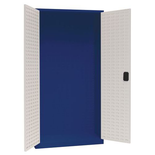 Metalowa szafka warsztatowa na skrzynki plastikowe, 195 x 100 x 45 cm, niebieska