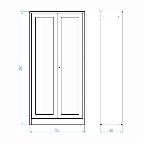 Szafa metalowa wyposażona w cztery półki przestawne i przeszklone drzwi przyda się wszędzie tam, gdzie wskazana jest łatwa orientacja w zawartości.