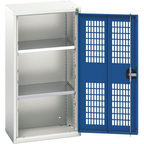 Szafka warsztatowa z półkami Bott Verso, drzwi druciane, 100 x 52,5 x 35 cm, 2 półki, szaro-niebieski