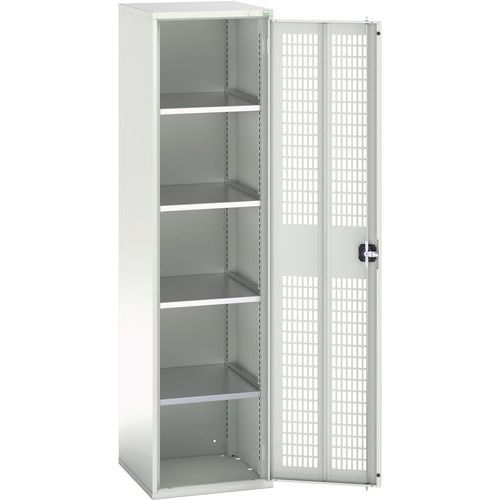 Szafka warsztatowa z półkami Bott Verso, drzwi druciane, 200 x 52,5 x 55 cm, 4 półki, szaro-szary
